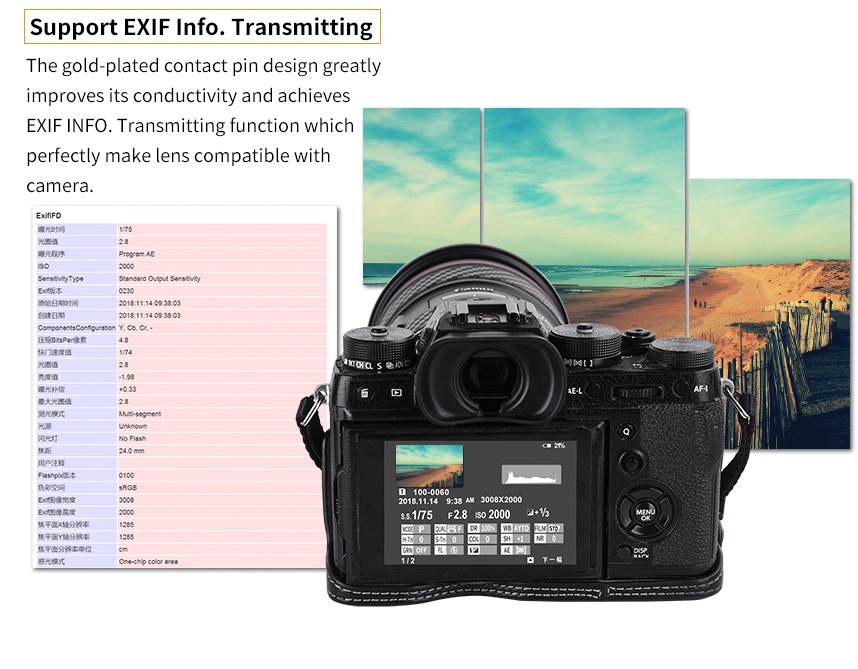 Objektivadaptern har en guldpläterade kontakt vilket ger en bra ledmingsförmåga och minskad oxidation.