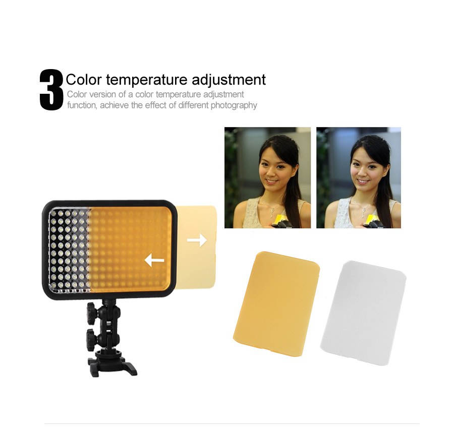 Godox Videobelysning med 126 stycken lysdioder är utmärkt för makrofotografi, produktfotografering och videoinspelning. Detta lätta och bärbara ljus ger hög ljusstyrka och exakt färgtemperatur. Du kan flexibelt styra ljusstyrkan genom att använda dimmerknappen.