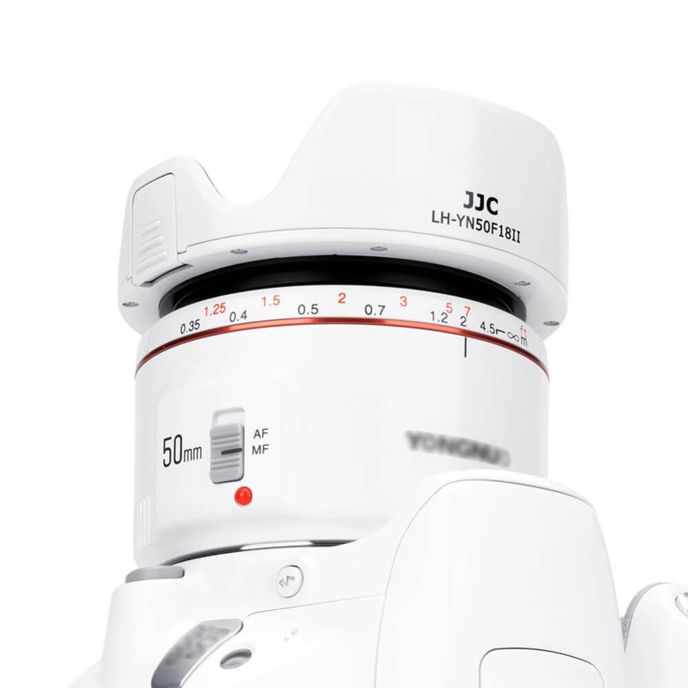 JJC Motljusskydd och adapterring för Yongnuo YN 50mm f/1.8 II (Vit)