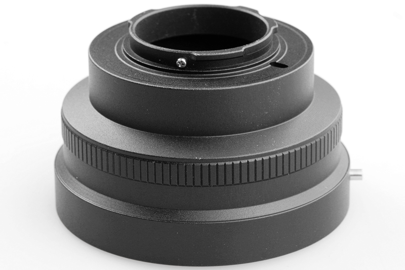 Adapterringen har inte några kontakter för kommunikation mellan kamerahus och optik. Det gör att man får fokusera och ställa in inställningar manuellt. Fokus till oändligt är möjligt.