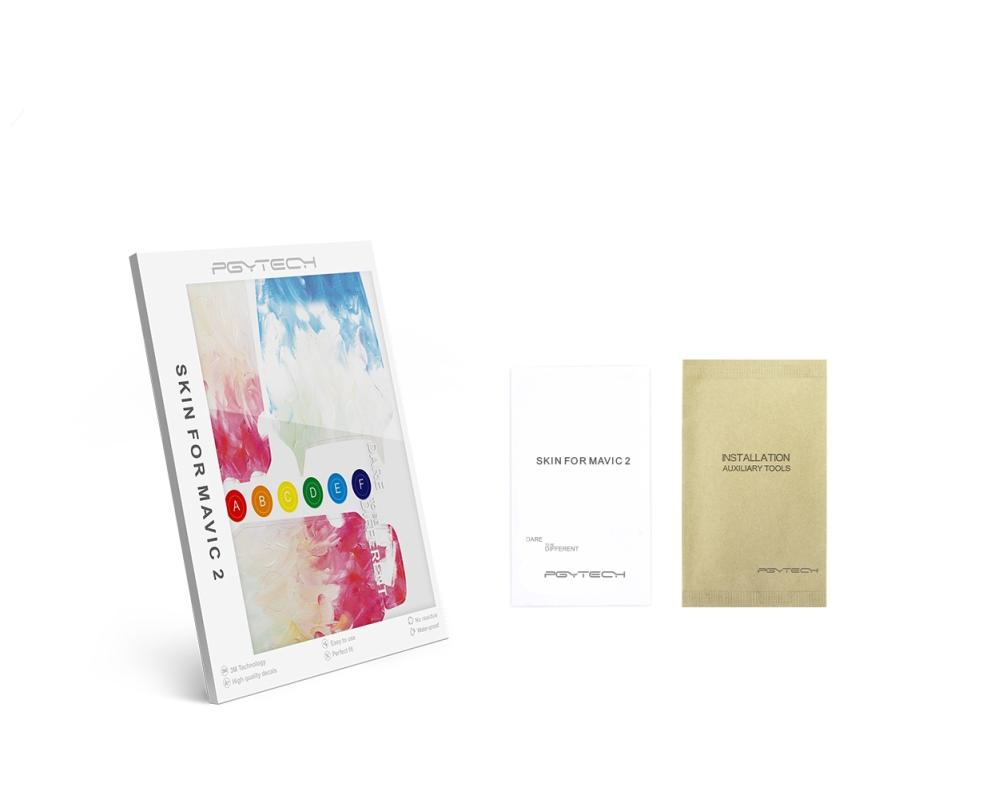 PGYTECH 3M självhäftande Skins för Mavic 2. Tillverkad av PVC-material, lätt och starkt, med luftstyrspår. Lätt att klistra på. Mönstret på klistermärket är tryckt med UV-bläckstråle-tryckteknik, som gör klistermärkena repsäkra, vattentäta, oljebeständiga och solskyddade.