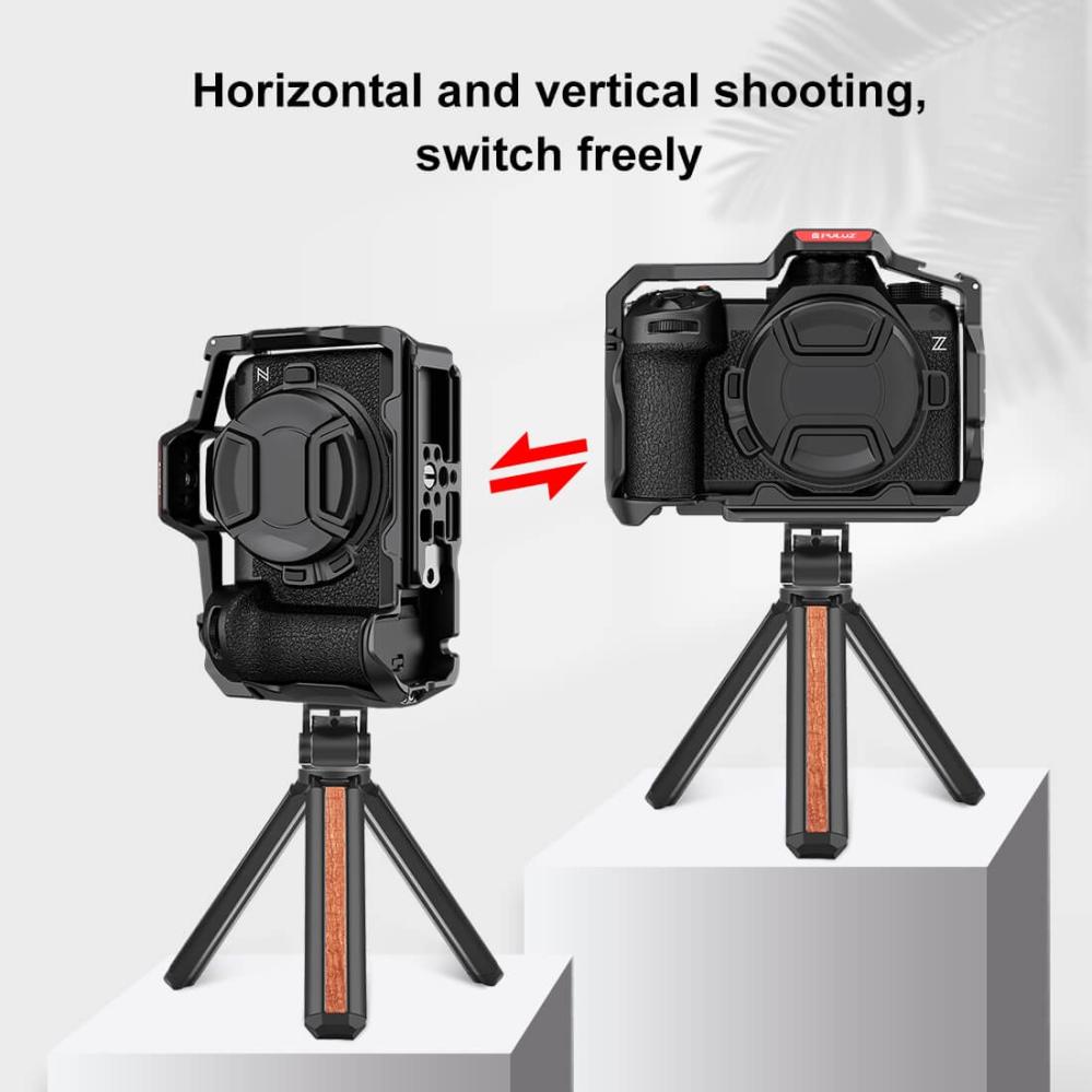 Med Puluz Kamerabur får du en mångsidig lösning som möjliggör enkel montering av olika tillbehör, samtidigt som du behåller full åtkomst till kamerans funktioner. Perfekt för både horisontell och vertikal fotografering.