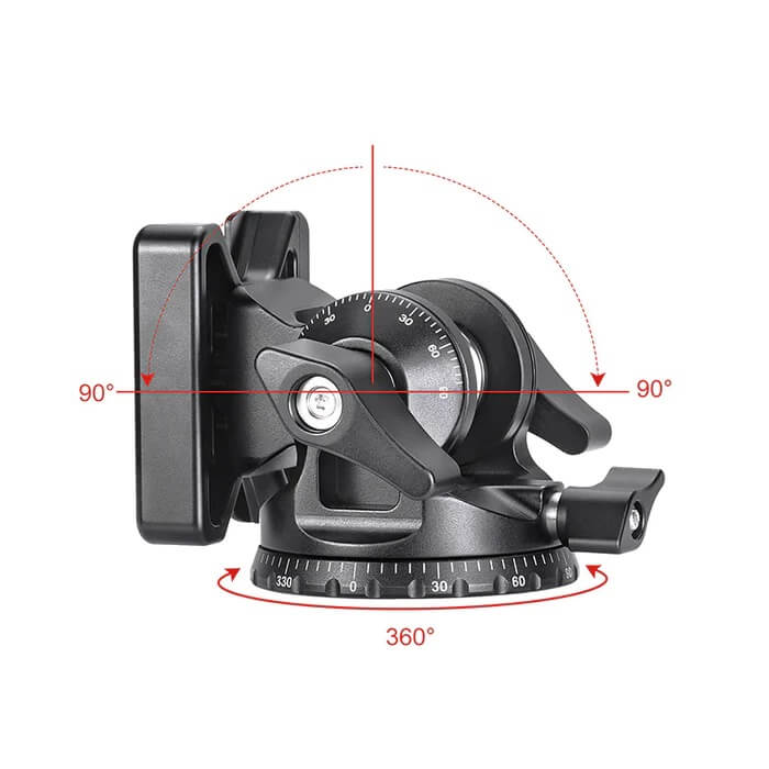 Den 360-graders roterbara panoramabasen ger stadig och jämn, med möjlighet att låsas för att förhindra oavsiktlig förskjutning av kamera/objektiv som kan påverka fokuseringen. Skalmarkeringar på panoramabasen kan användas som referens vid panoramafotografering. De förlängda rattarna ger ett bättre grepp och enklare hantering. Både rattarna och skruvknappen på panoramabasen har en ratchet-mekanism, vilket säkerställer enkel drift och undviker interferens med andra komponenter.