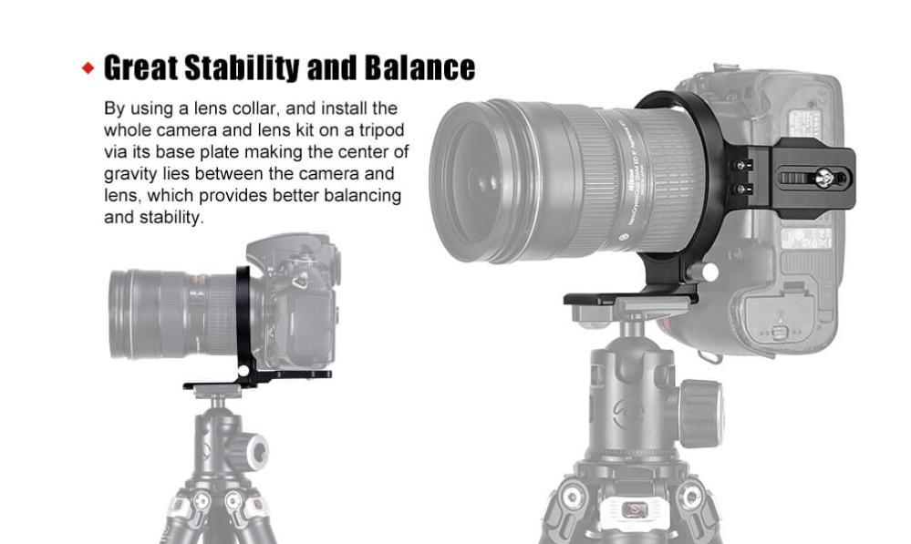 ● Ökad stabilitet: Fördelar vikten jämnt på stativet och minskar vibrationer, vilket förbättrar bildkvaliteten, särskilt vid användning av tunga objektiv.